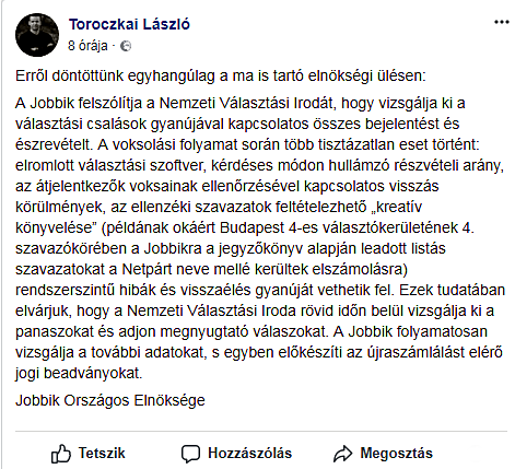 A Jobbik felszólítja a Nemzeti Választási Irodát